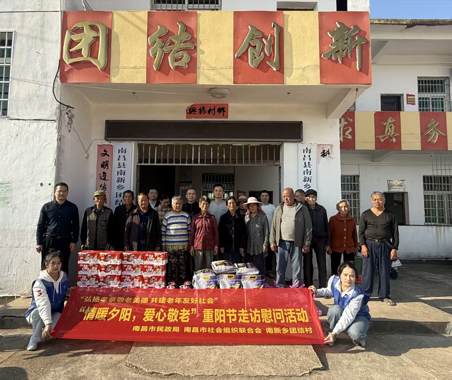 重阳节前夕,快猫 二级调研员邱锐带领南昌市社会组织联合会、南昌心灵家园成长中心的志愿者们,深入局挂点帮扶的南昌县南新乡团结村、蒋巷镇三洞村开展重阳节走访慰问活动,送上米面油奶等生活物资,实地查看居住环境,询问生活中是否存在困难,与老人们共度重阳佳节,让老年人切实感受到党和政府的关爱和温暖。